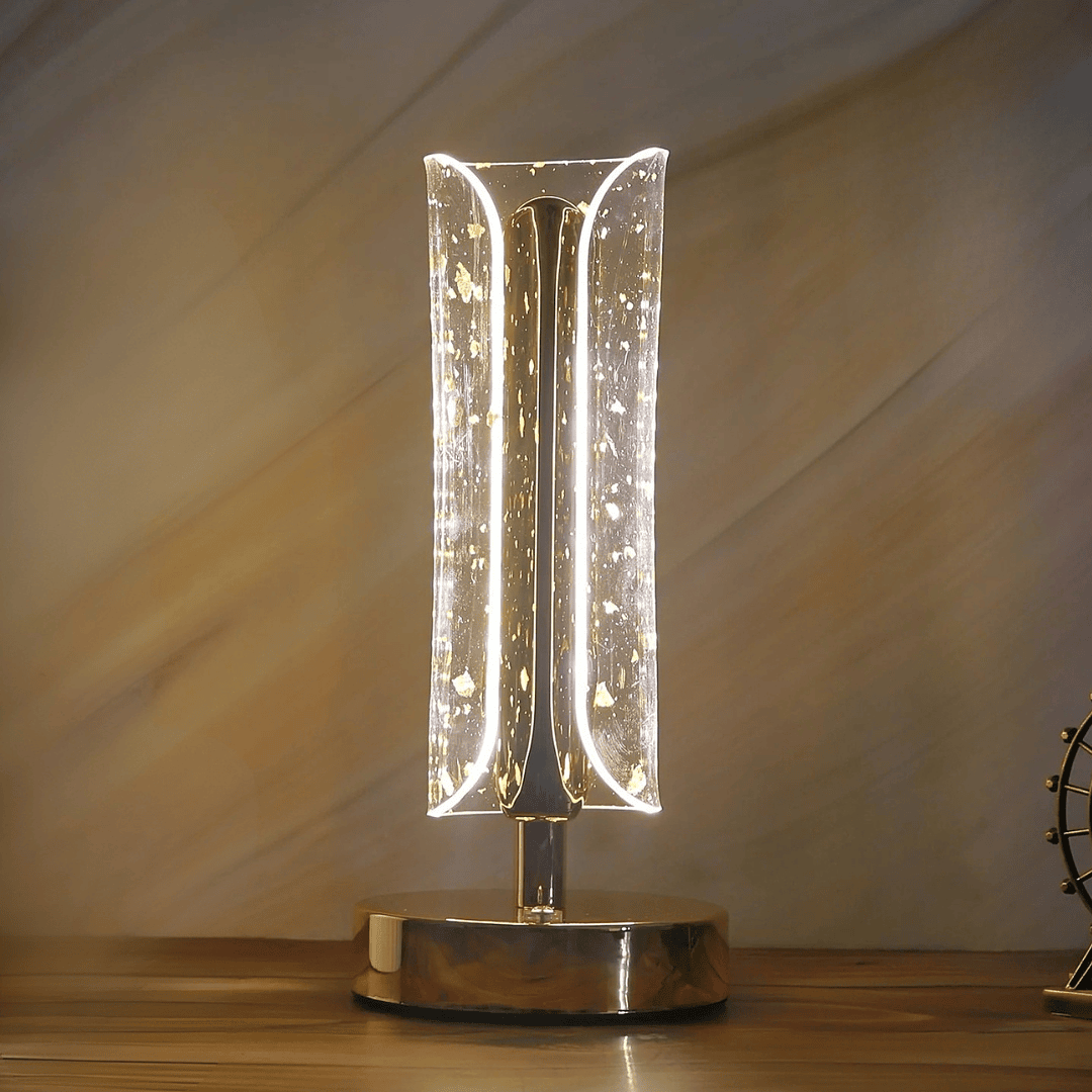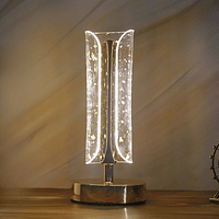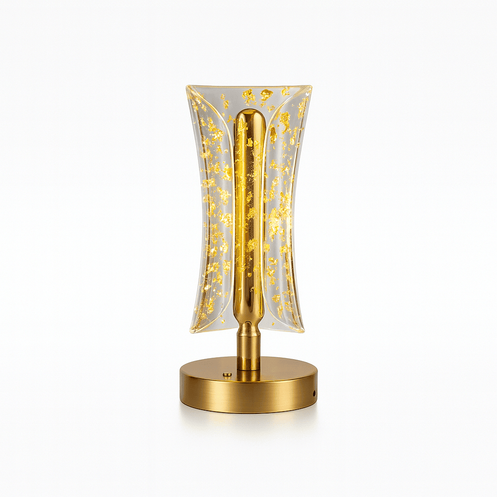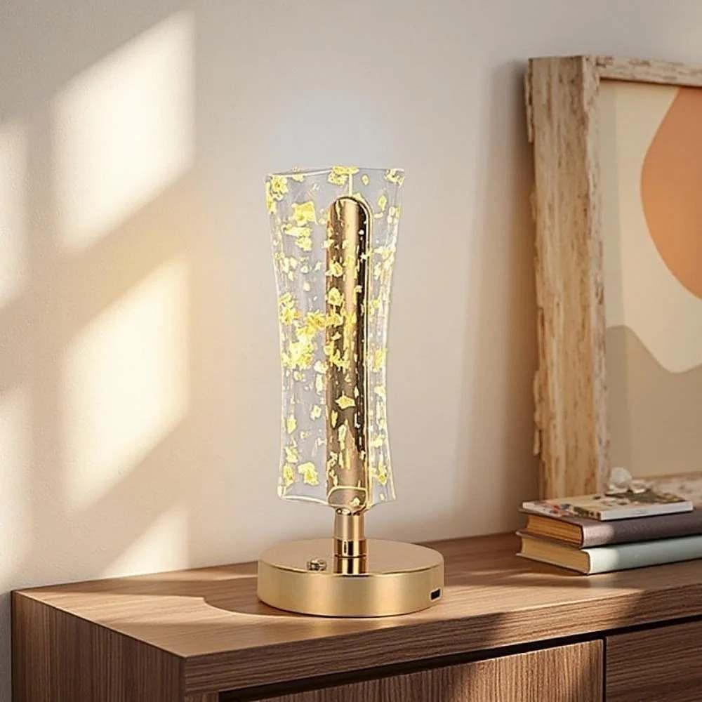 Luminária LED Cristal Luxo com Base Dourada 3 Modos de Cor Recarregável