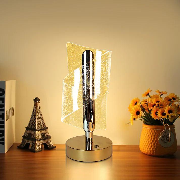 Luminária de Mesa Luxo Espiral Acrílica – Design Moderno em Dourado