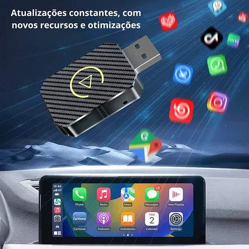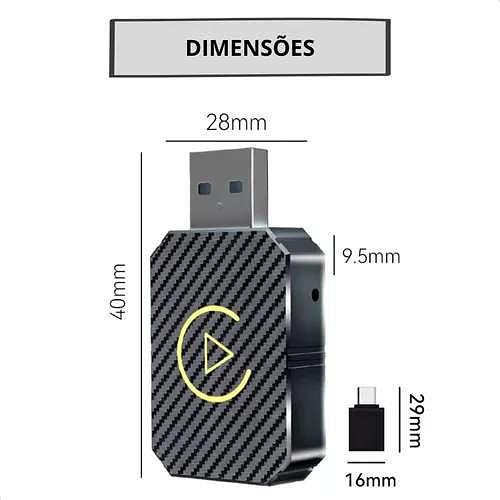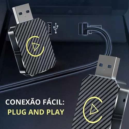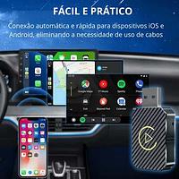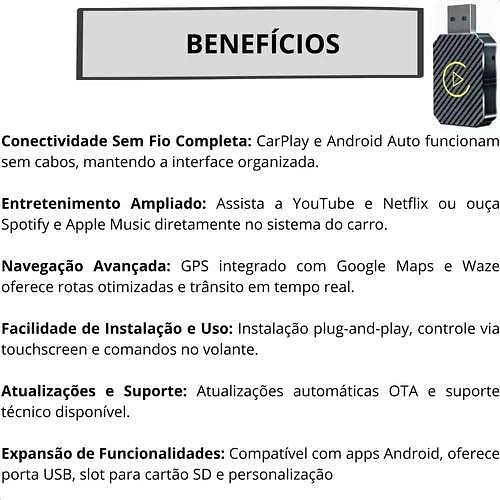 Este produto NÃO adiciona CarPlay ou Android Auto à central multimídia. Ele apenas transforma a conexão com fio em uma conexão sem fio, eliminando o uso de cabos.