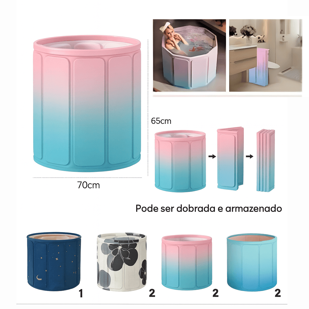 Desfrute de um banho relaxante e revigorante onde estiver. Esta banheira dobrável para adultos é ideal para transformar qualquer ambiente em um verdadeiro SPA. Com design inteligente, é perfeita para quem busca praticidade, conforto e bem-estar, mesmo em espaços reduzidos.