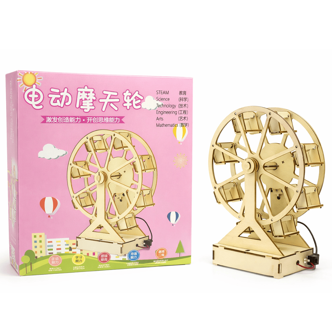 Roda Gigante de Madeira DIY STEM 3D – Kit Educativo de Engenharia com Motor para Montar