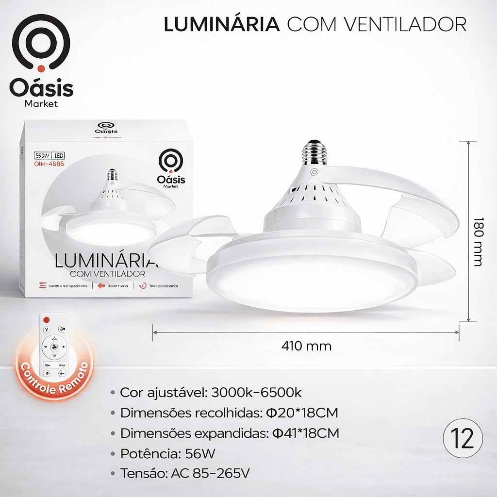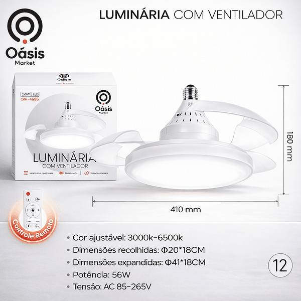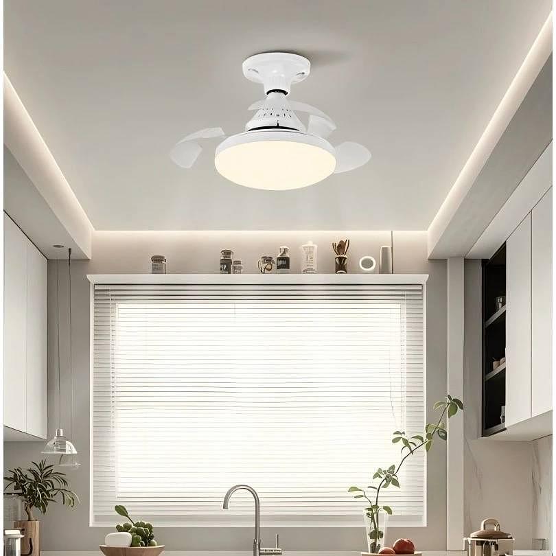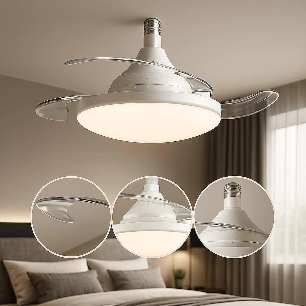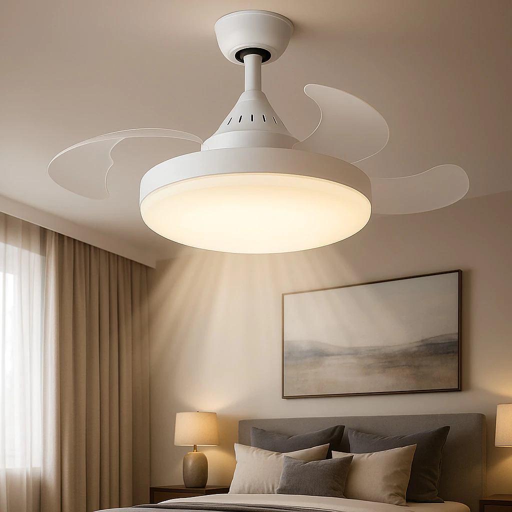 Ventilador De Teto Retrátil 56W Silencioso Lâmpada LED 3 Cores