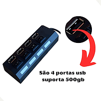 Aumente Suas Conexões: Precisa de mais portas USB no seu notebook, PC, console ou smart TV? Este Hub USB multiplica suas conexões, transformando uma entrada em quatro! Conecte simultaneamente teclado, mouse, fone de ouvido, caixas de som, pendrive, celular, impressora e muito mais, tudo sem perda de desempenho.