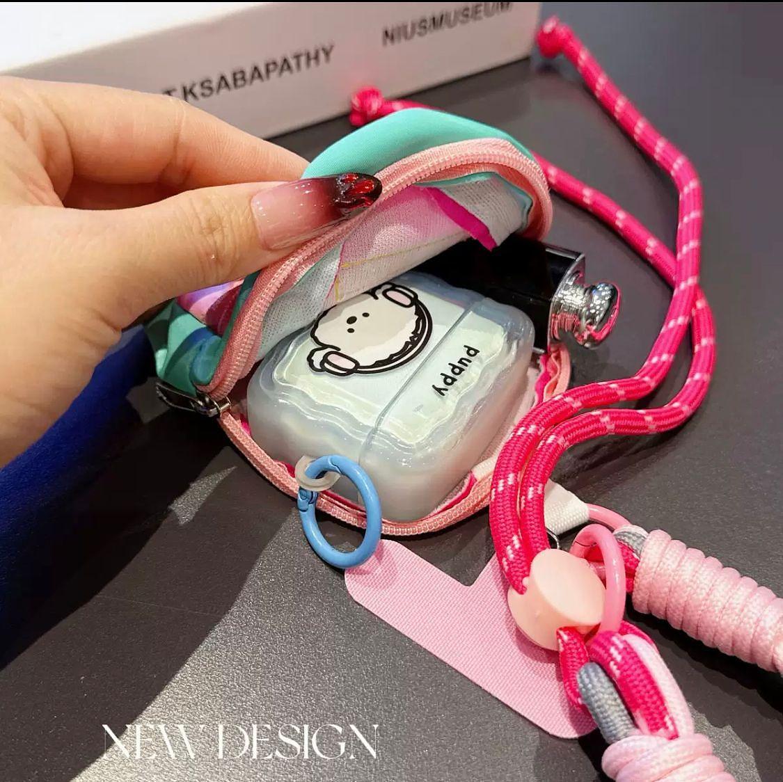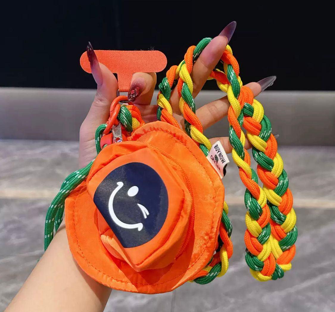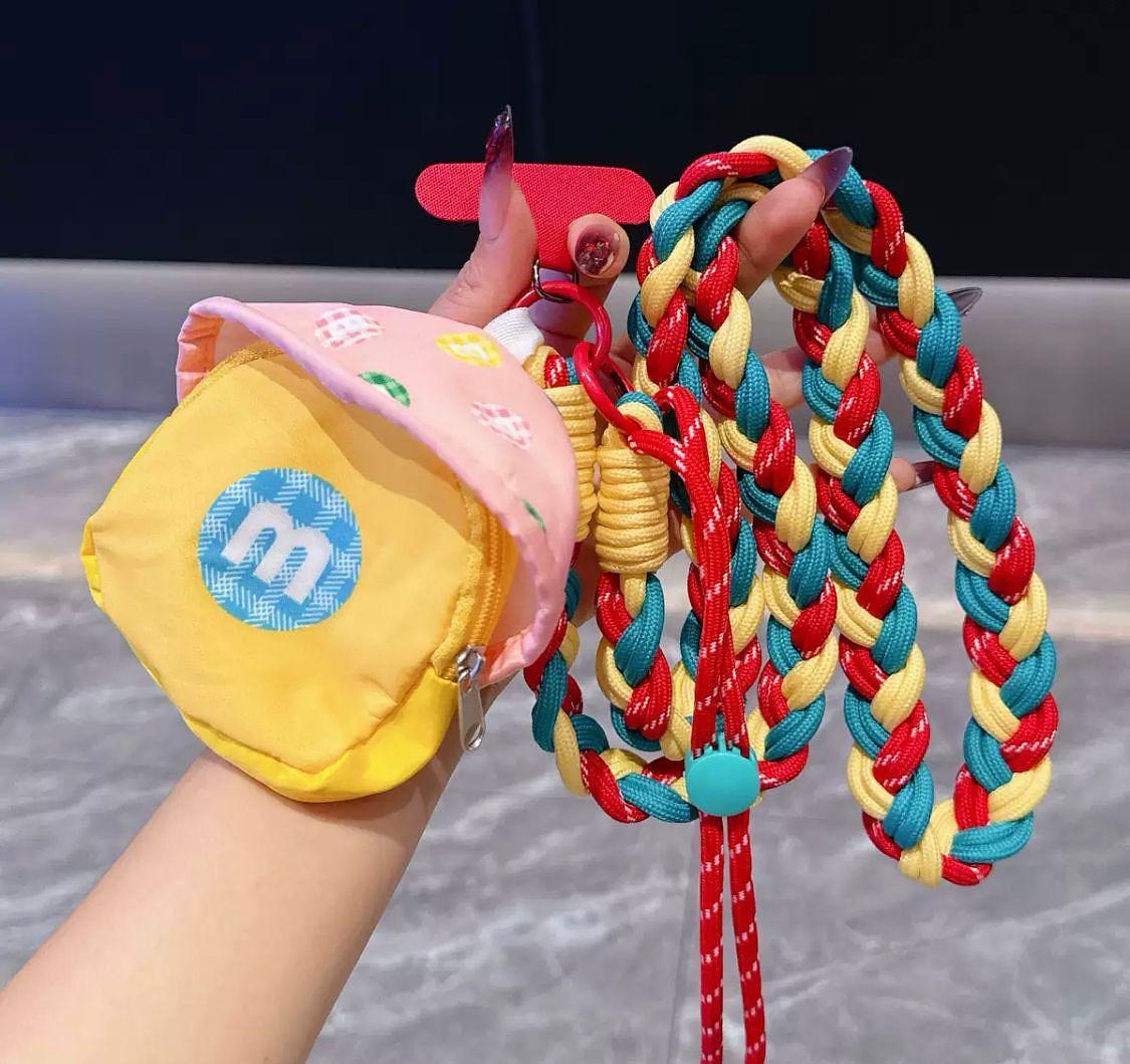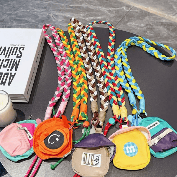 Cordão para celular com Bolsinha para Fones Chaves Alça de Corda Trançada Transversal
