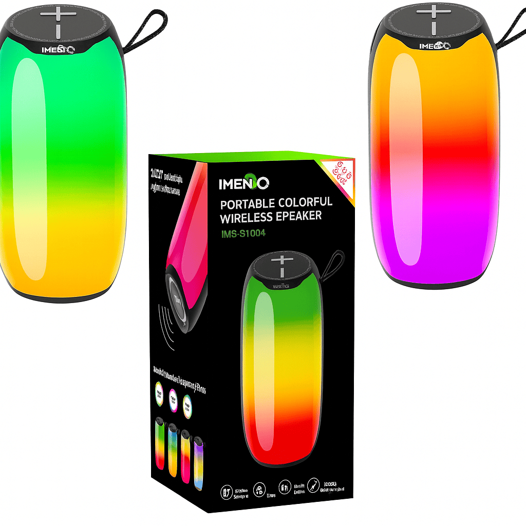 Eleve sua experiência de áudio com a Caixa de Som Portátil LED RGB IMS-S1004 e desfrute de som de alta qualidade e um visual deslumbrante!