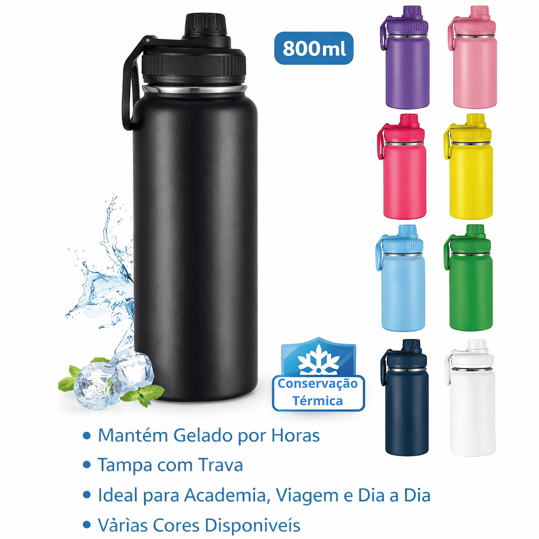 Garrafa Térmica Inox 800ml com Alça e Protetor de Silicone (Envio Aleatório)