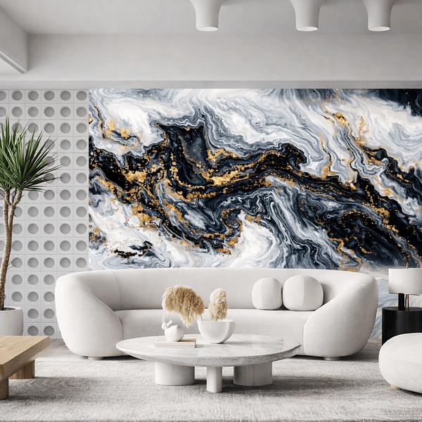 Placa Adesiva Marmorizada Branco Preto e Dourado 120x300cm