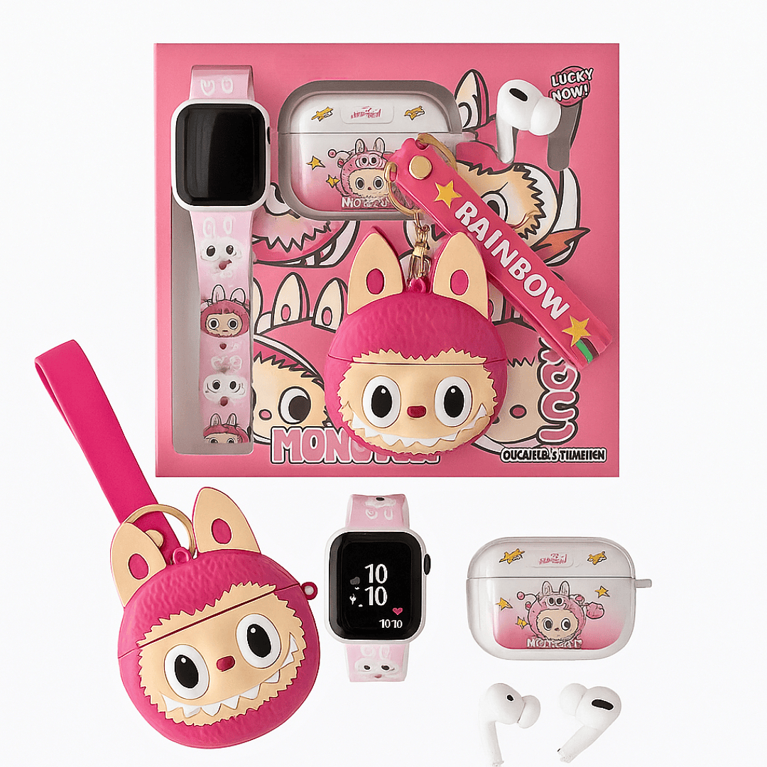 Kit Presente Infantil Labubu Fone Bluetooth Chaveiro e Relógio Smart