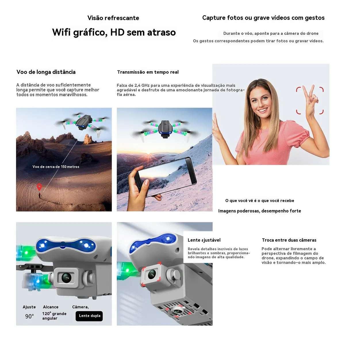 Drone E99D Pro Câmera 1080p HD 4K Mini Dobrável WiFi 2.4G