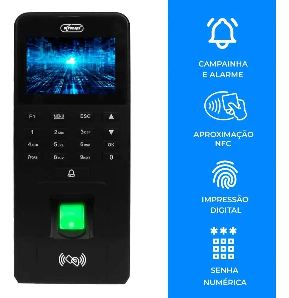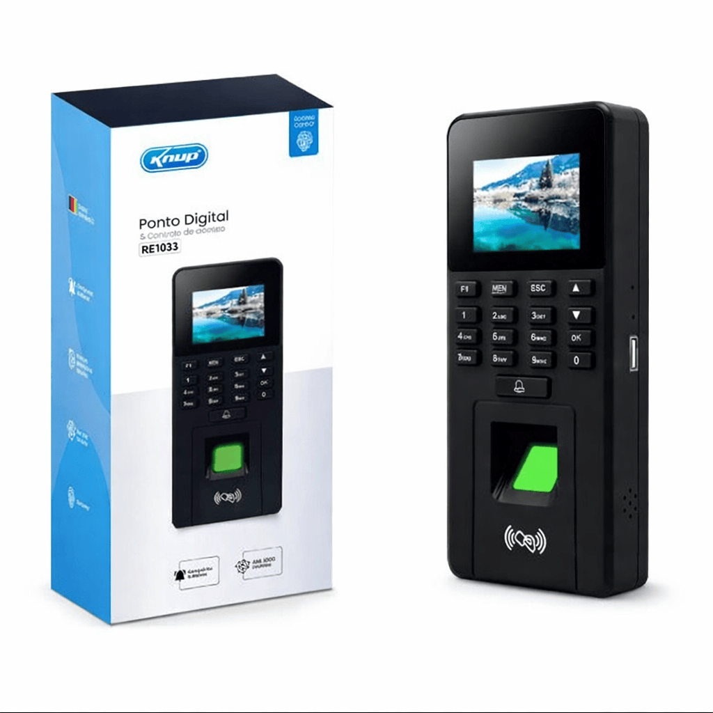 Ponto Digital e Controlador de acesso Alarme Biometria Senha Cartão Esse Relógio de Ponto Digital é a solução completa para o gerenciamento de ponto e controle de acesso em sua empresa. Com tecnologia de ponta, este dispositivo combina praticidade, segurança e precisão, garantindo um registro de ponto eficiente e sem complicações. Bata o ponto por meio de leitura biométrica, senha numérica ou aproximação NFC, Automatize o processo de controle de ponto e obtenha relatórios detalhados com facilidade, além de proteger sua empresa contra fraudes no controle de ponto com tecnologias modernas de identificação. Ideal para empresas de pequeno, médio e grande porte, escritórios, fábricas, instituições de ensino, e qualquer organização que necessite de um controle de ponto confiável e automatizado. (ATENÇÃO: Não acompanha cartão NFC). Dimensões: 19x9x3 (AxLxE) Peso: 440g Especificações: - Modelo: KP-RE1033 - Registros biométricos: 1.000 - Registros por senha: 1.000 - Registros de usuários: 1.000 - Registros de cartão: 1.000 - Armazenamento de registros: 100.000 - Tempo de Resposta: 0,3 segundos - Tensão de operação: 9~12Vdc/1A (Naõ acompanha fonte) - Método de identificação: Biometria/ senha/ cartão/ Combinação - Aproximação NFC (Não acompanha cartão) Características: - Relatório de presença - Alarme contra violação do ponto digital - Display colorido LCD - Cadastro de funcionários, departamentos e turnos - Função Campainha - Controle da abertura da porta (Atenção: O produto não acompanha fonte de alimentação, o mesmo deve ser adquirido separadamente. Para instalação é necessário o auxílio de um técnico.) Itens inclusos: 1x Ponto digital 1x Kit de instalação 1x Manual de instruções