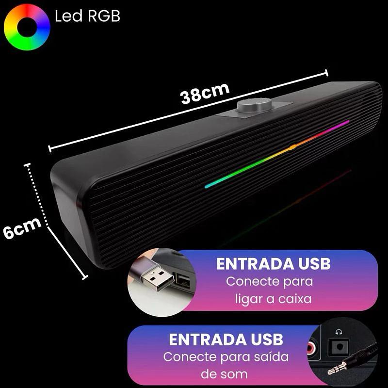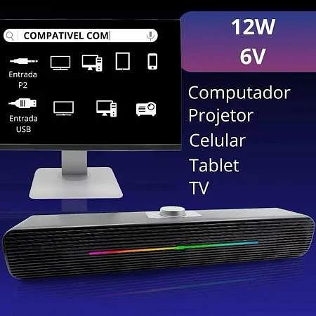 🔊 Som Potente e Estéreo 2.0 – 12W de potência para músicas, filmes e jogos.
