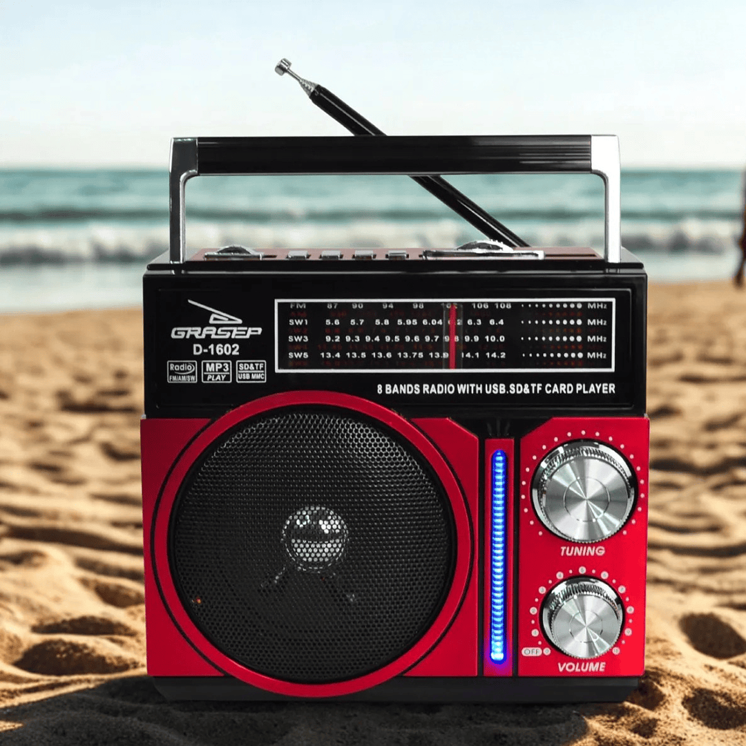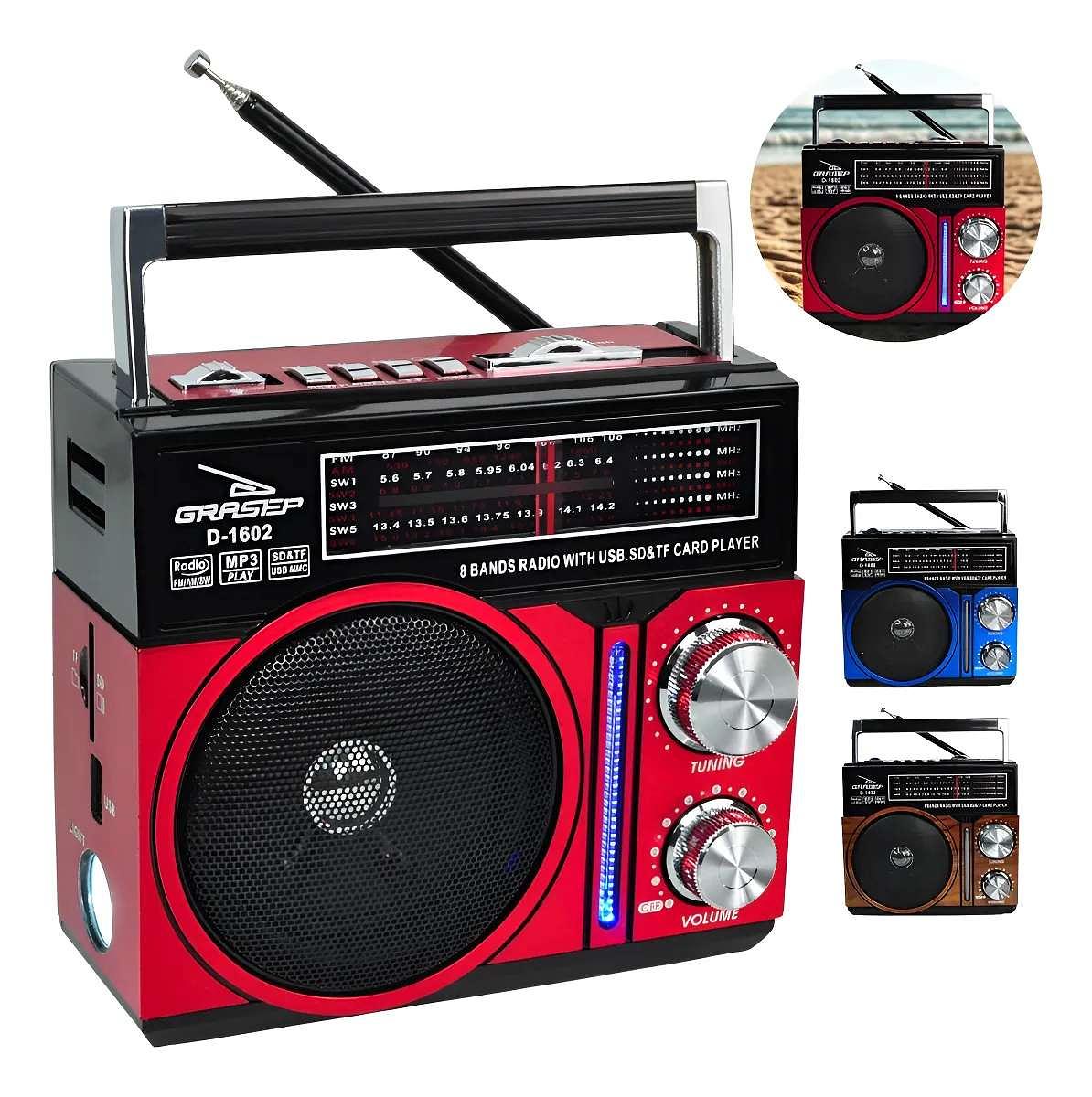 Características: Entradas para Pendrive, Cartão Micro SD e Cartão SD Som Hi Fi de alta qualidade Rádio FM integrado Fácil instalação e utilização Portátil, possui alça para transporte Bateria interna de excelente autonomia Permite uso simultâneo com bateria externa // Conteúdo da embalagem: 01 Rádio Am FM Antigo Retrô Portátil USB Vintage Recarregável 01 Cabo Bipolar 1,5M 01 Manual de instruções