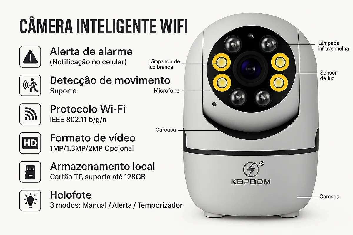 Câmera Inteligente Wi Fi KA S065 Kapbom: Segurança 24h na Palma da Sua Mão!
