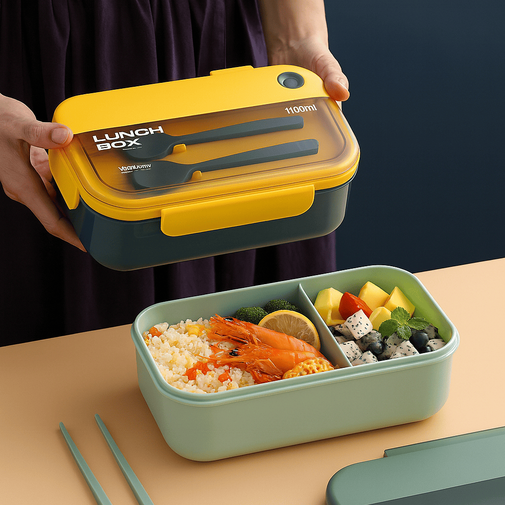 Marmita Lancheira 1100ml Com Compartimentos E Kit Talheres