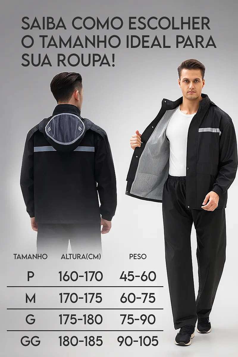 Proteção total contra chuva e vento! Produzida em PVC com revestimento de TPU, garante alta resistência à água e conforto em qualquer situação.