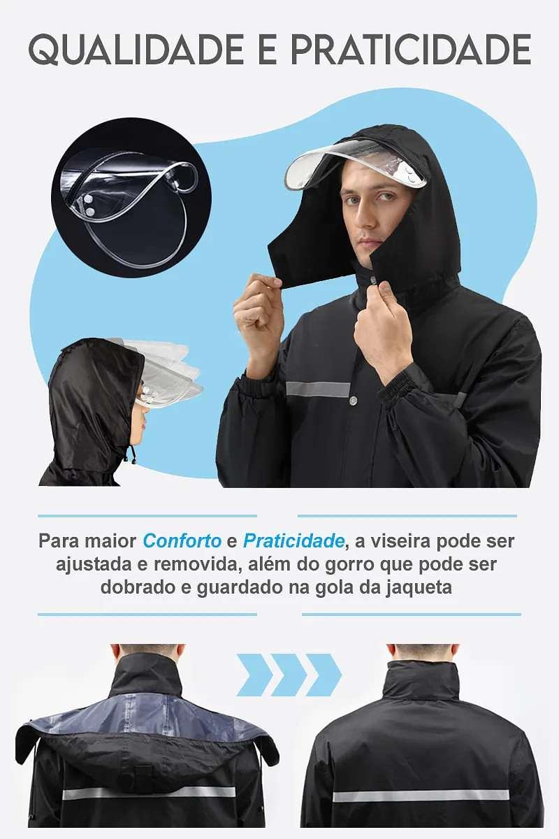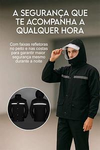 Proteção total contra chuva e vento! Produzida em PVC com revestimento de TPU, garante alta resistência à água e conforto em qualquer situação.
