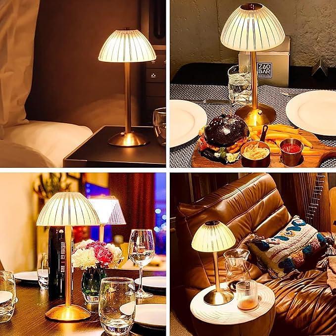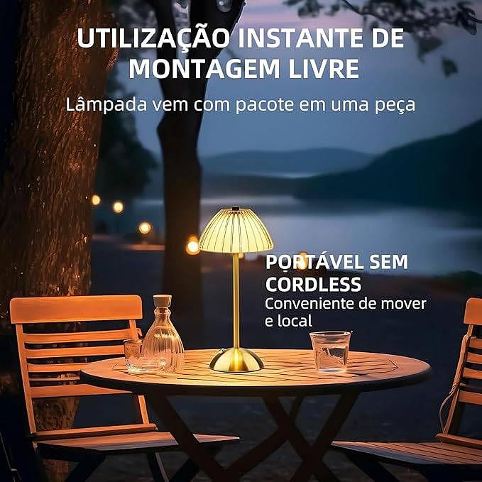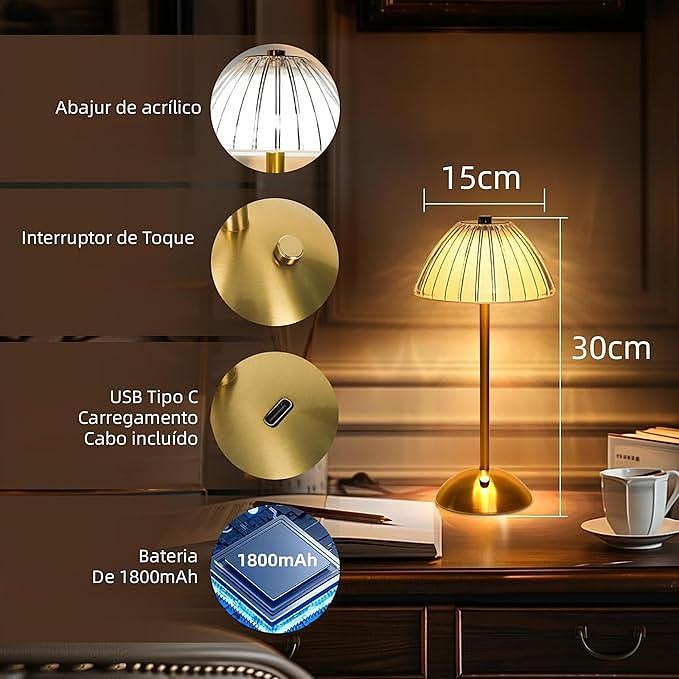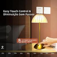 Abajur Plissado Touch LED Dourada – 3 Modos de Iluminação