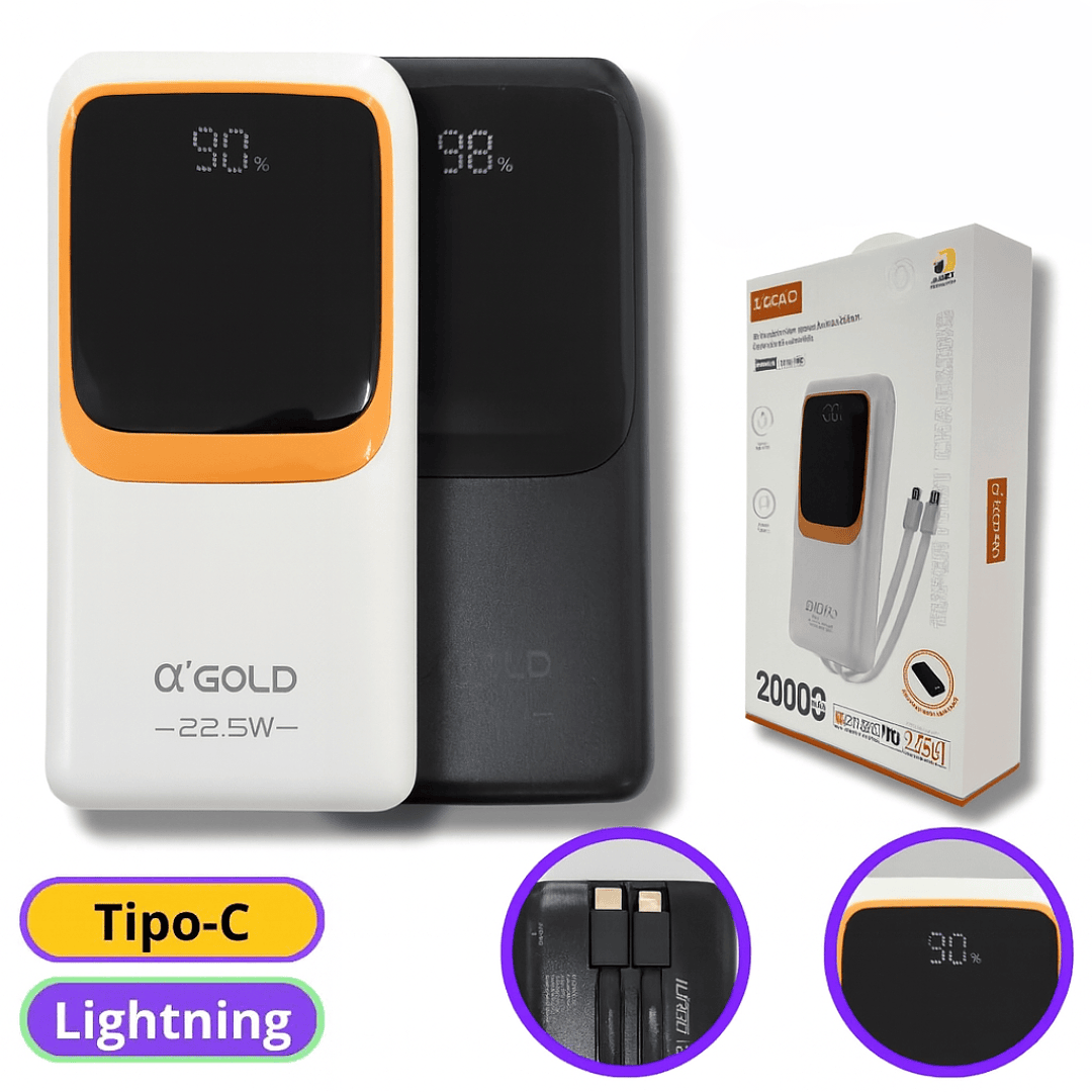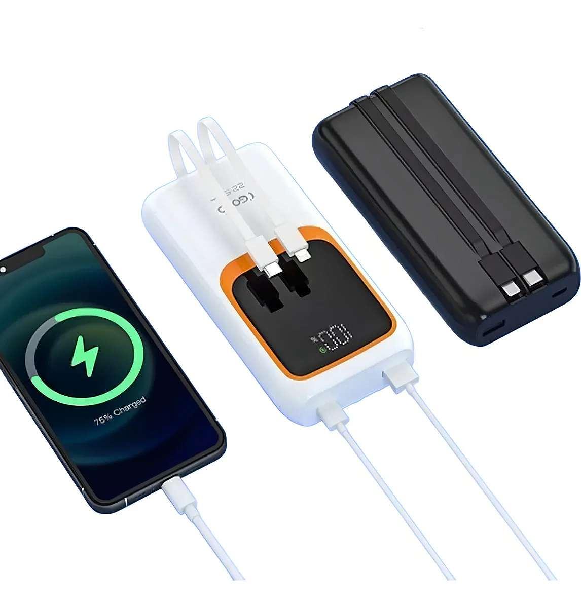 Capacidade de 20000mAh: Prolongue a duração de uso dos seus dispositivos sem a necessidade frequente de recarregar o power bank. Aproximadamente 8 cargas para dispositivos com bateria de 20000mAh.