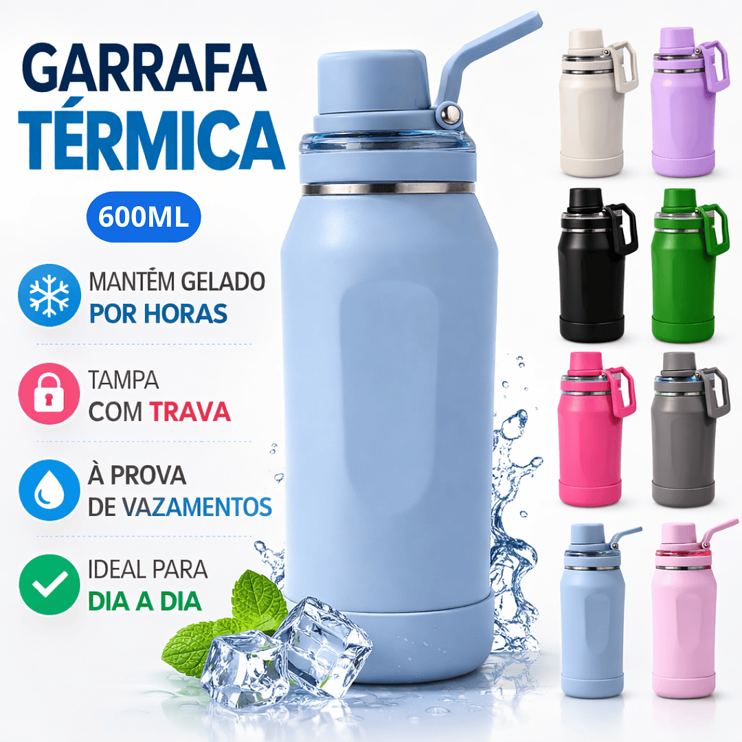 Garrafa Térmica Inox 600ml com Alça e Protetor de Silicone (Envio Aleatório)