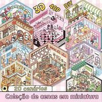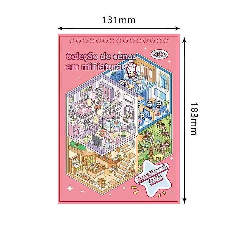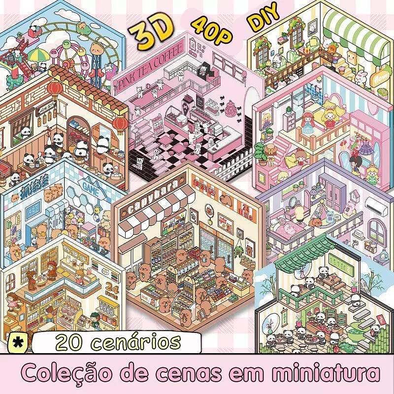 Caderno de adesivos 3D de cenas em miniatura + Pinça