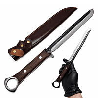 Faca Para Churrasco Pesca 36,5cm Afiada Artesanal Esculpida Cor Prateado E Madeira