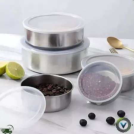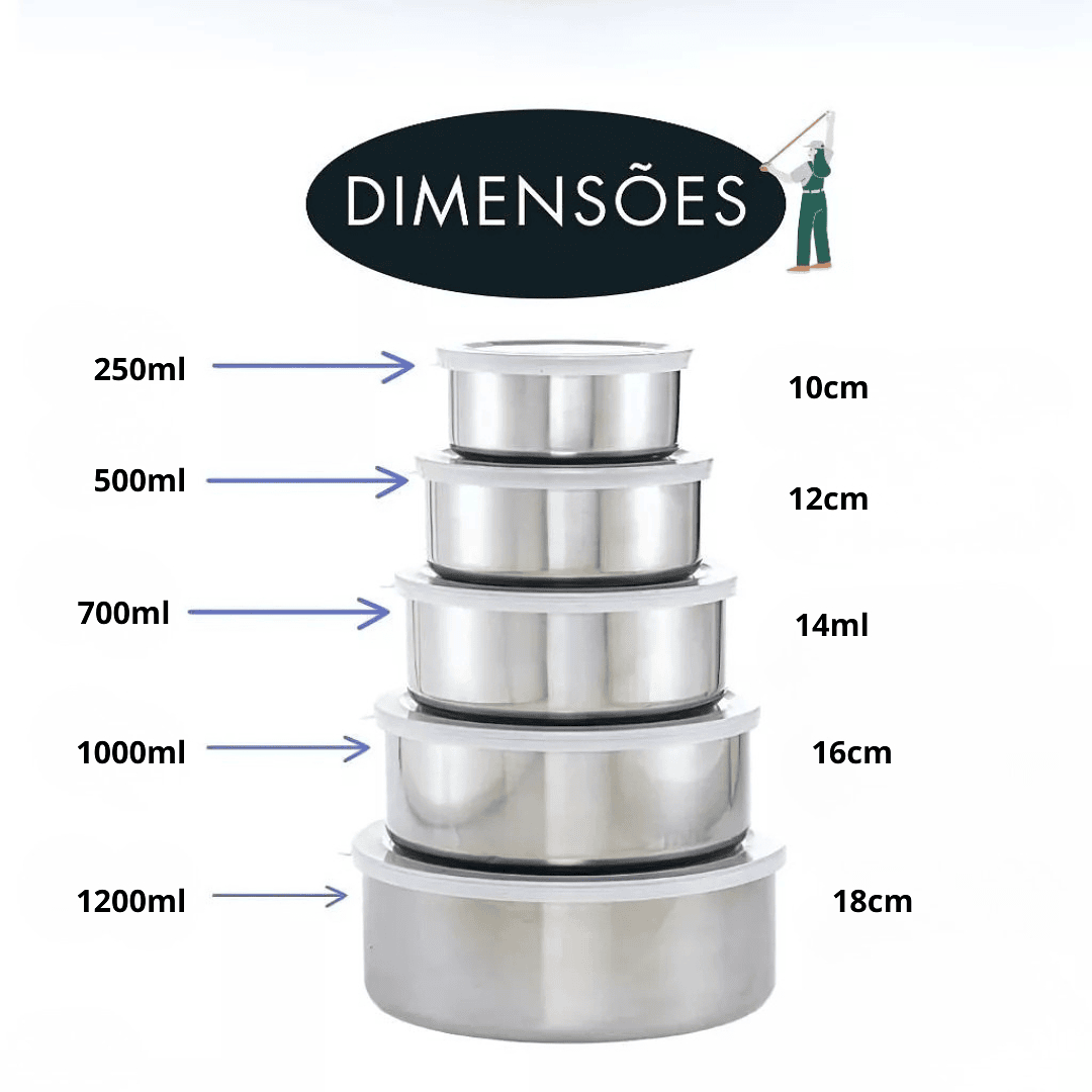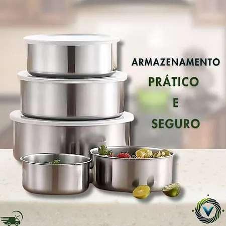 🥗 CONJUNTO DE POTES EM AÇO INOX – ELEGÂNCIA E PRATICIDADE NA SUA COZINHA!
