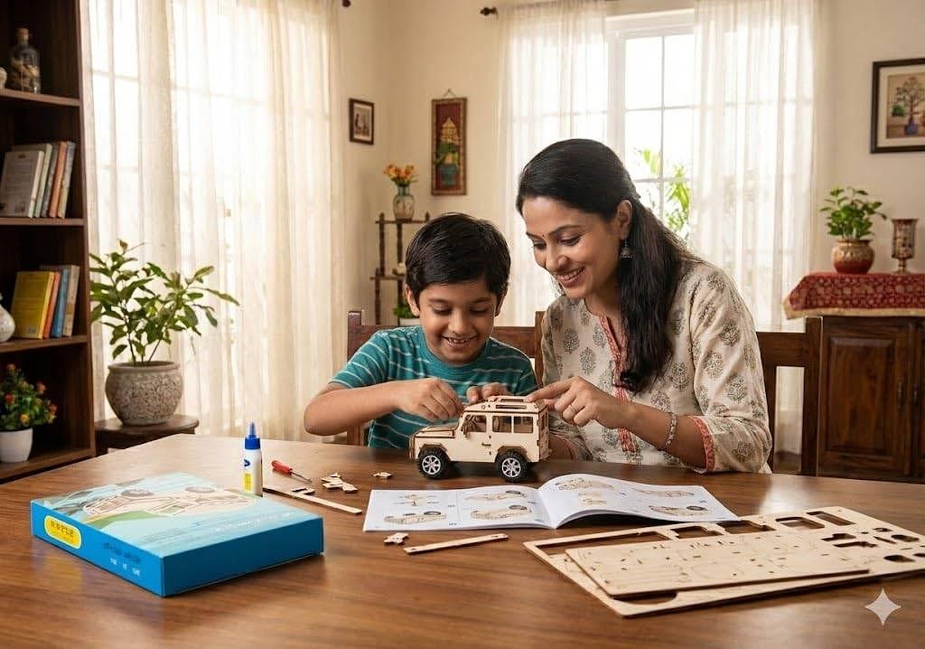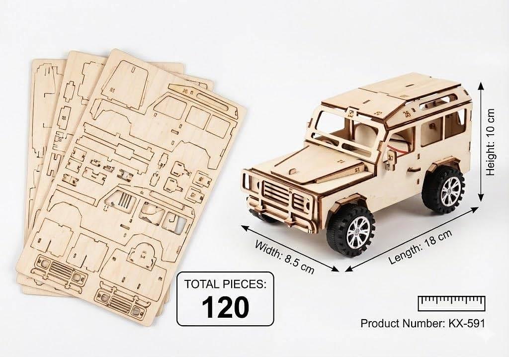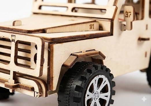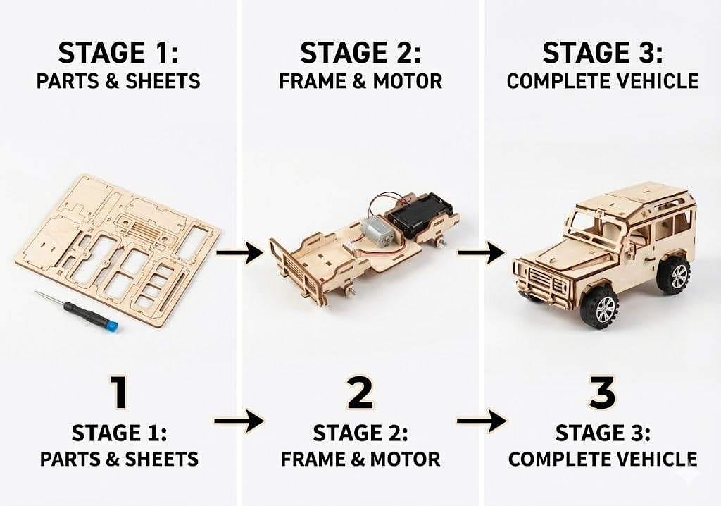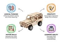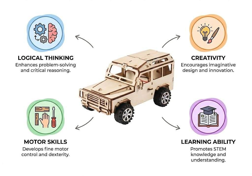 Carro Elétrico de Madeira DIY STEM 3D – Kit Educativo de Engenharia com Motor para Montar