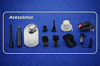 Aspirador de Pó para Carros sem fio 2 Baterias de lítio 21v