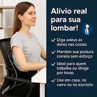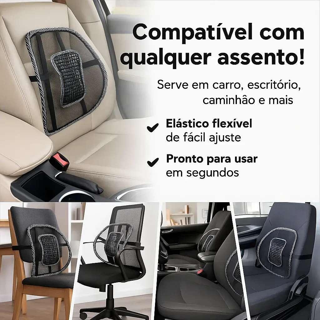 O Apoio Lombar mantém sua postura correta ao sentar-se, evitando desconfortos na coluna. É confeccionado em material leve e arejado e possui elástico ajustador para encaixe em diferentes cadeiras e banco do carro.