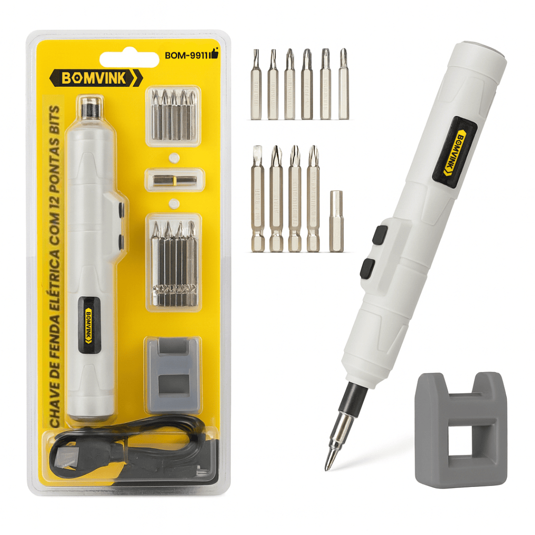 Transforme seu trabalho de reparos e manutenções com a Chave de Fenda Elétrica 3.6V. Com 12 pontas bits incluídas, ela oferece conveniência e praticidade para os mais diversos tipos de parafusos, garantindo eficiência em cada uso. Seu design compacto e ergonômico permite longas sessões de trabalho sem desconforto, e sua alta capacidade de bateria de 13000mAh garante um desempenho contínuo por horas. Ideal para quem busca rapidez e soluções, é uma ferramenta essencial para quem valoriza qualidade e praticidade!