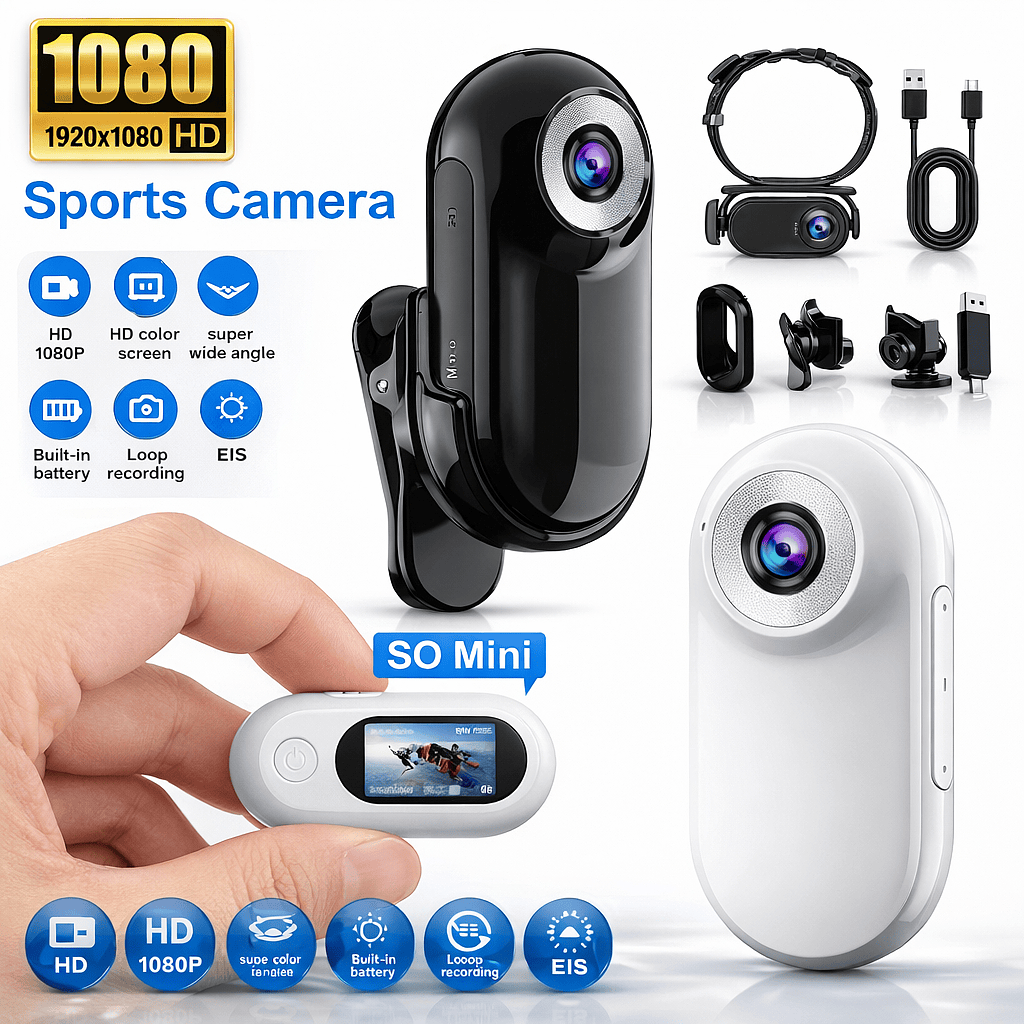 Mini Câmera De Ação Esportiva Portátil 1080P com Acessórios de Gravação Corporal