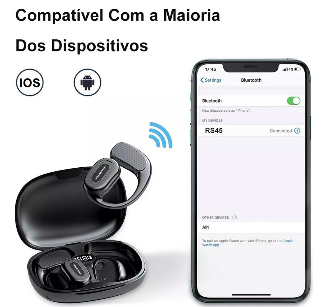 Fone de ouvido bluetooth 5.3 esportivo com gancho de orelha 6H