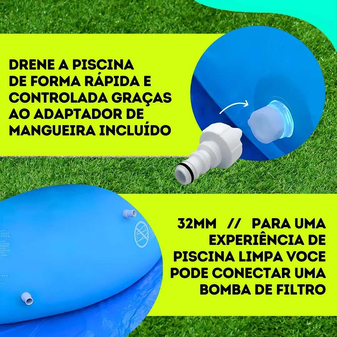 Muito fácil de instalar, esta piscina inflável traz de volta a sensação de ter férias de verão no conforto do seu próprio quintal. Proporcionando a todos um local para se refrescar e aproveitar os meses quentes de verão!