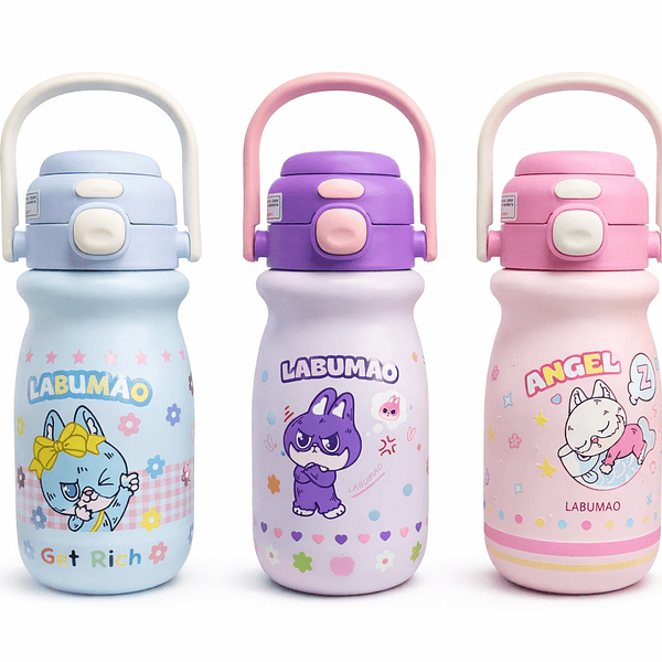 Garrafa Térmica Infantil Labubu Fofa 520ml com alça 2 Aberturas