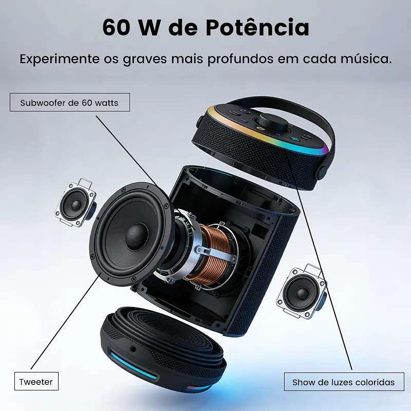 Grande apresentação do alto-falante X30A, uma mistura perfeita de potência forte, durabilidade duradoura e design elegante. Criado para os amantes da música que procuram qualidade e estilo, o X30A oferece uma experiência de som imersiva e uma construção robusta e durável que é suficiente para todos os desafios. Seja em casa, numa festa ou numa aventura ao ar livre, a X30A é o parceiro ideal para levar a sua música consigo. Construção superior: a construção superior do X30A é refletida em seus materiais de alta qualidade que garantem sua força e durabilidade. Seu design moderno e robusto não só se destaca na aparência, mas também possui a estabilidade necessária para uso em uma variedade de ambientes. Cada detalhe da X30A foi cuidadosamente concebido para proporcionar uma experiência excepcional, tornando-se um alto-falante confiável e durável para acompanhá-lo em todas as suas aventuras. Poder 60W: X30A tem o poder 60W, pode fornecer o som de alta qualidade com graves profundos e o som claro. Sua excelente qualidade de som é capaz de transformar qualquer ambiente, trazendo uma experiência de audição rica e imersiva. X30A é adequado para todos os tipos de estilos de música e pode fornecer efeitos sonoros potentes, completos e chocantes. É ideal para os usuários que buscam forte poder e excelente qualidade de som. Bateria 8000mAh: o X30A é equipado com uma bateria de grande capacidade 8000mAh que fornece 4 a 6 horas de tempo de reprodução contínua (o tempo exato depende do tamanho do volume). Esta resistência de longa duração permite-lhe desfrutar da sua música favorita sem necessidade de carregar com frequência. Seja uma festa, um evento ou uma atividade ao ar livre, o X30A garante que sua música continue tocando por horas, mantendo a atmosfera da festa em alta. Certificação à prova d'água IPX6: X30A possui certificação à prova d'água IPX6, que pode lidar com vários ambientes e é ideal para uso ao ar livre. Com esta proteção, você pode levar sua música para a praia, piscina ou qualquer outro lugar sem se preocupar com salpicos de água ou chuva. O X30A é um alto-falante versátil e durável, pronto para atender às suas várias necessidades. Função de TWS para trazer uma experiência mais imersiva, o X30A é equipado com a função de TWS (estéreo sem fio verdadeiro), que pode conectar dois dispositivos de X30A sem fio para criar um efeito estéreo chocante. Este recurso dobra o volume e estende a cobertura de áudio, tornando o X30A ideal para grandes eventos e espaços amplos. As funções do TWS são flexíveis e versáteis e se adaptam perfeitamente às suas várias necessidades. A luz RGB dinâmica X30A não é apenas um alto-falante, mas também uma festa visual, graças à sua iluminação RGB dinâmica. As luzes são sincronizadas com a música para criar uma atmosfera vibrante que transforma instantaneamente qualquer espaço em uma cena de festa. Com a iluminação RGB do X30A, cada momento torna-se excepcionalmente maravilhoso. Adicione um toque de cor e emoção à sua experiência musical. Uma variedade de cores opcionais, destacando seu estilo de personalidade. O X30A oferece várias opções de cores para que você escolha a que melhor reflete sua personalidade. Não importa qual cor você escolher, o X30A garante que sua música seja perfeitamente apresentada com estilo e qualidade. Do clássico ao moderno, há sempre um X30A para o seu gosto. Especificação: bluetooth versão: 5.3; Distância de transmissão: 15 metros; Alto-falantes: 1 pc; Tensão de funcionamento: 3.7v; Tensão de carregamento: DC5V; Tamanho: 133*133*317 milímetros. Lista de embalagem: 1 alto-falante Imenso 30a; 1 cabo de alimentação tipo-c; 1 linha de áudio; 1 manual do usuário.