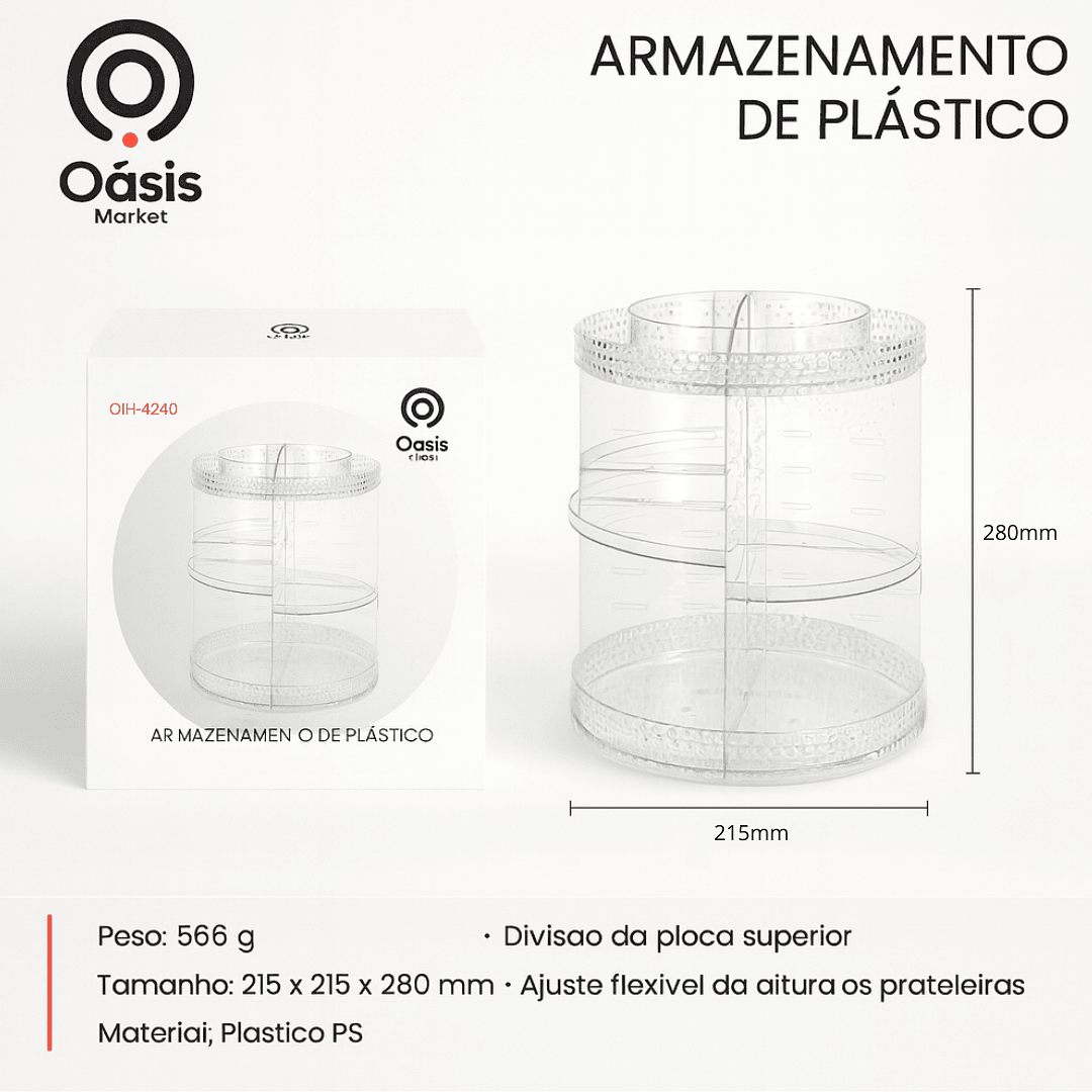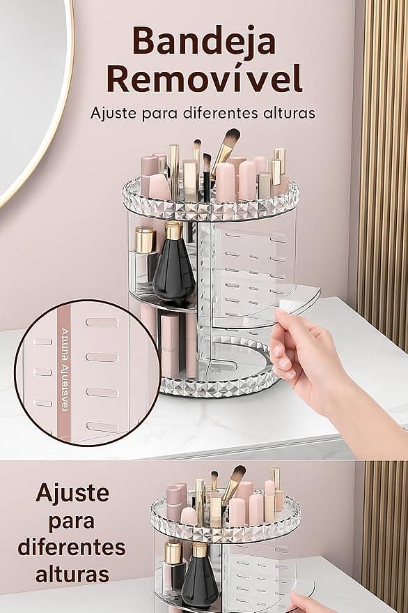 Com uma montagem super fácil, capacidade para armazenar muitos itens e prateleiras ajustáveis de alta versatilidade, esse organizador vai revolucionar a forma como você organiza sua maquiagem.