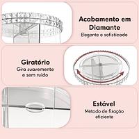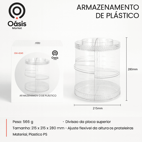 Possui fácil montagem e desmontagem, que ajuda em reorganizar e na limpeza do produto. Além dos espaços no meio ele conta com compartimentos no topo que pode ser armazenado ainda mais produtos, consegue armazenar tantas maquiagens e cosméticos que você nem vai acreditar.