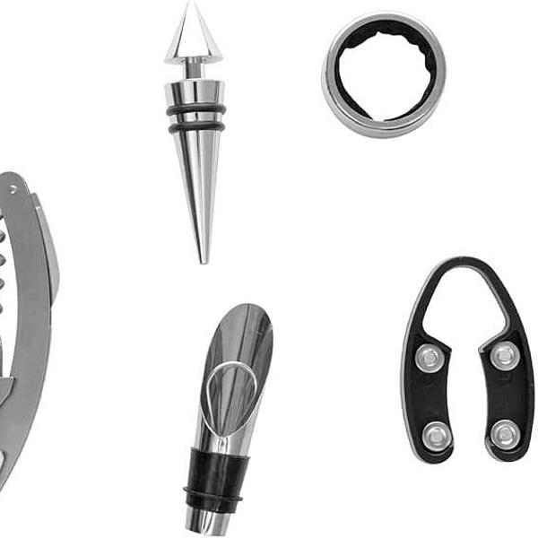 Kit Acessórios P/ Vinho em Garrafa 5 Peças Saca Rolhas Abridores