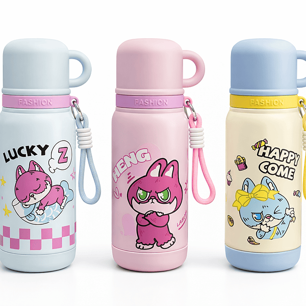 Garrafa Térmica Infantil Labubu Fofa 520ml com Xícara e 2 Aberturas