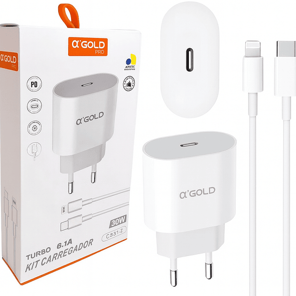 Carregador Completo turbo 30W 6.1A Tipo C p/Lightning A´Gold PRO
