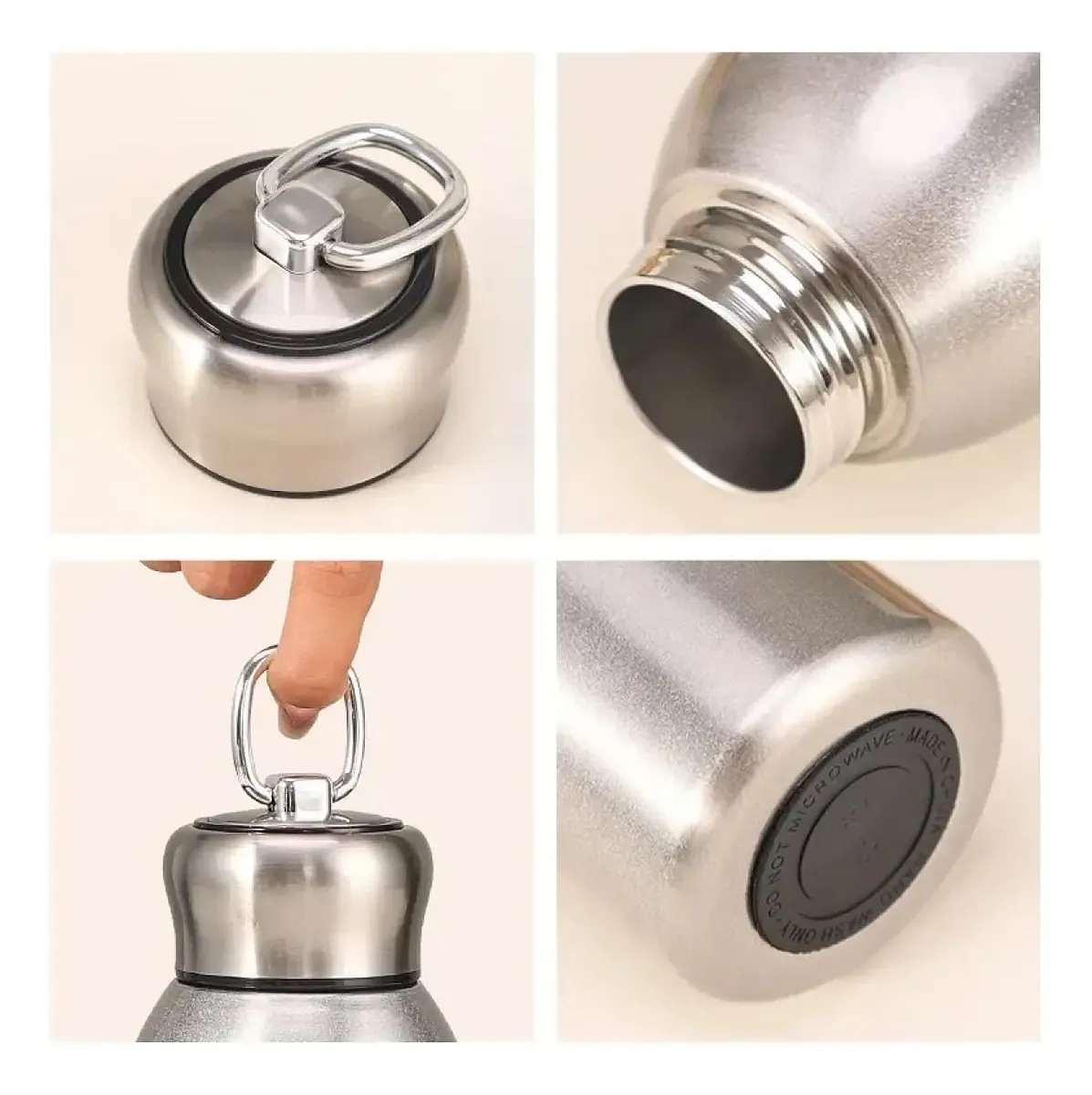Esta caneca de viagem de aço inoxidável oferece uma capacidade generosa de 300 ml, perfeita para manter as bebidas frias ou quentes durante viagens longas.