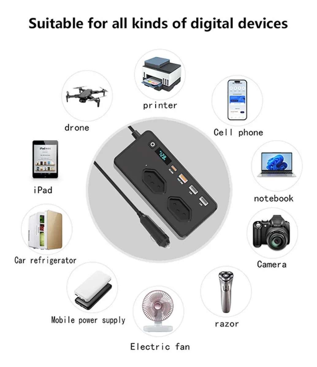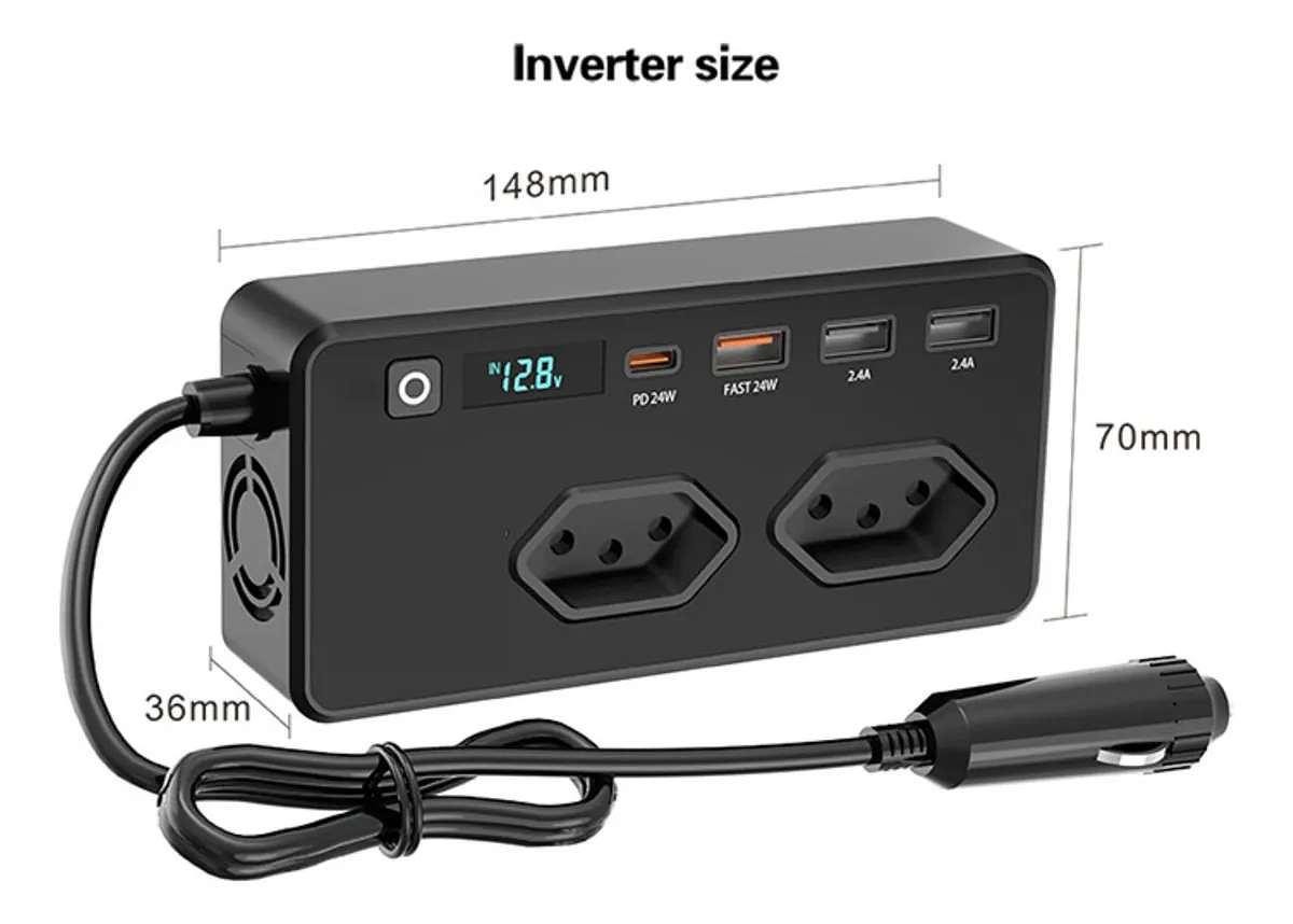 Inversor Automotivo 12v 127v Tomada Usb Carregamento Rapido 350W