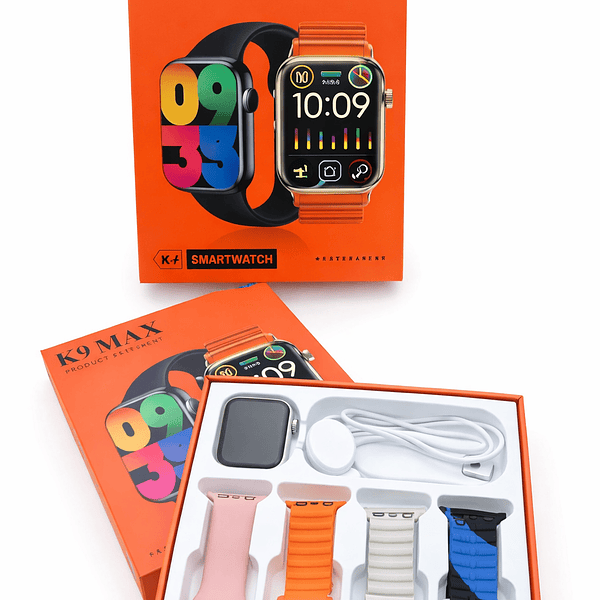 Smartwatch K9 Max – Monitoramento de Saúde, Tela Touch e 4 Pulseiras Inclusas