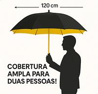 guarda chuva automatico preto tecido duplo grande reforcado com capa