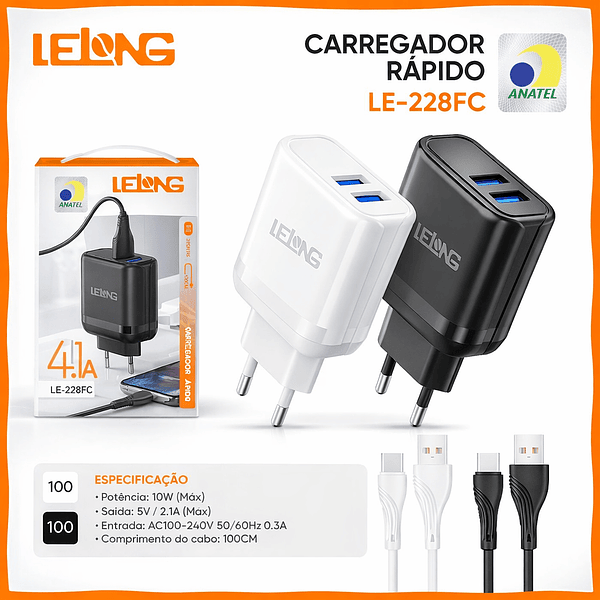Kit Carregador Turbo Rápido 4.1a + 2 Usb para Type-c