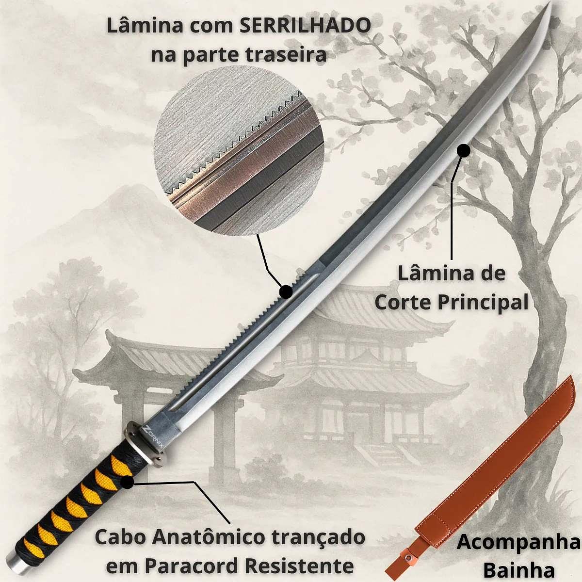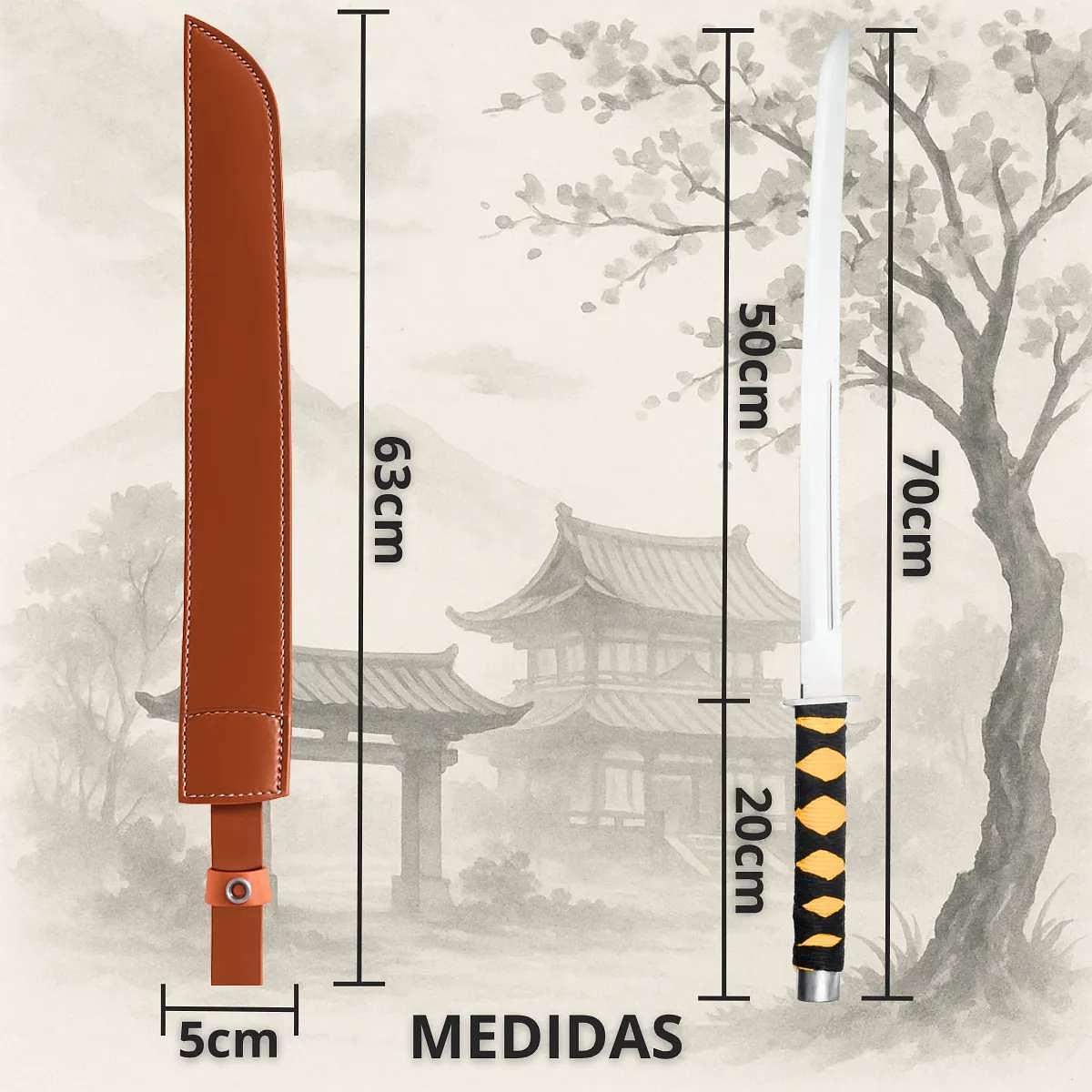 Espada Samurai Katana 70cm Com Fio Corte + Bainha Couro