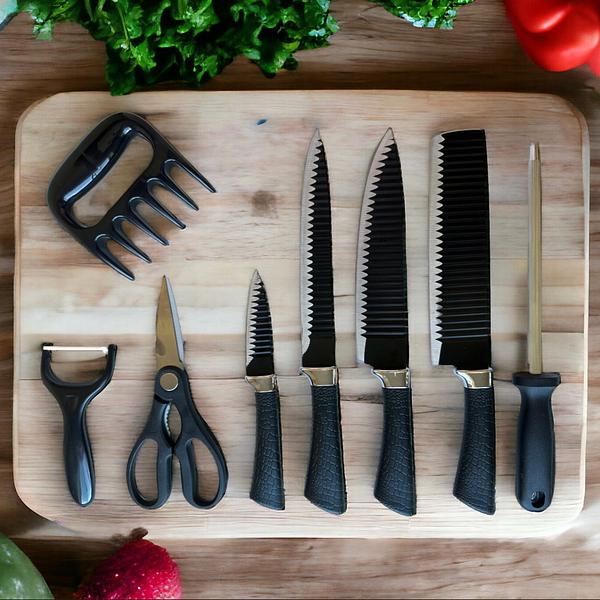 Kit Facas para Churrasco Antiaderente Corte Navalha 8 peças PRETAS