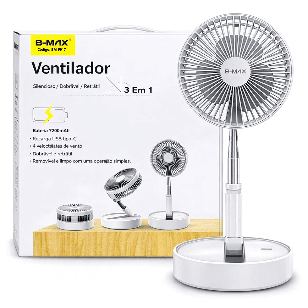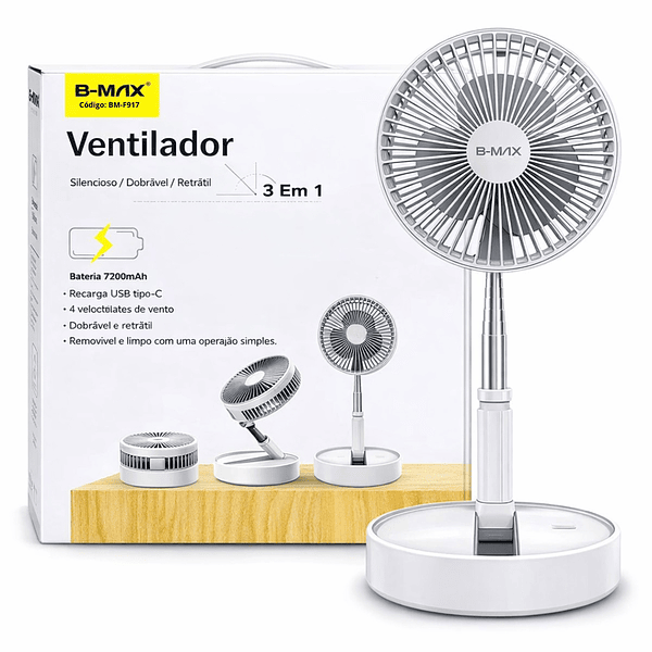 Mini Ventilador Portantil De Mesa 2 Em 1 Com 3 Velocidades e Ajuste de Altura