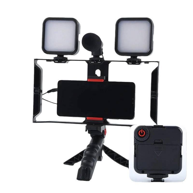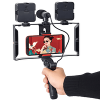 Inclui Microfone Com Entrada P2 (TRRS 3.5mm), Suporte para Telefone, Tripé De Mão E 2 Luzes LED Inclusas.Perfeito Para Blogs de Vídeo, Streaming Vivo, Chamadas de Vídeo, Entrevistas, Etc.
