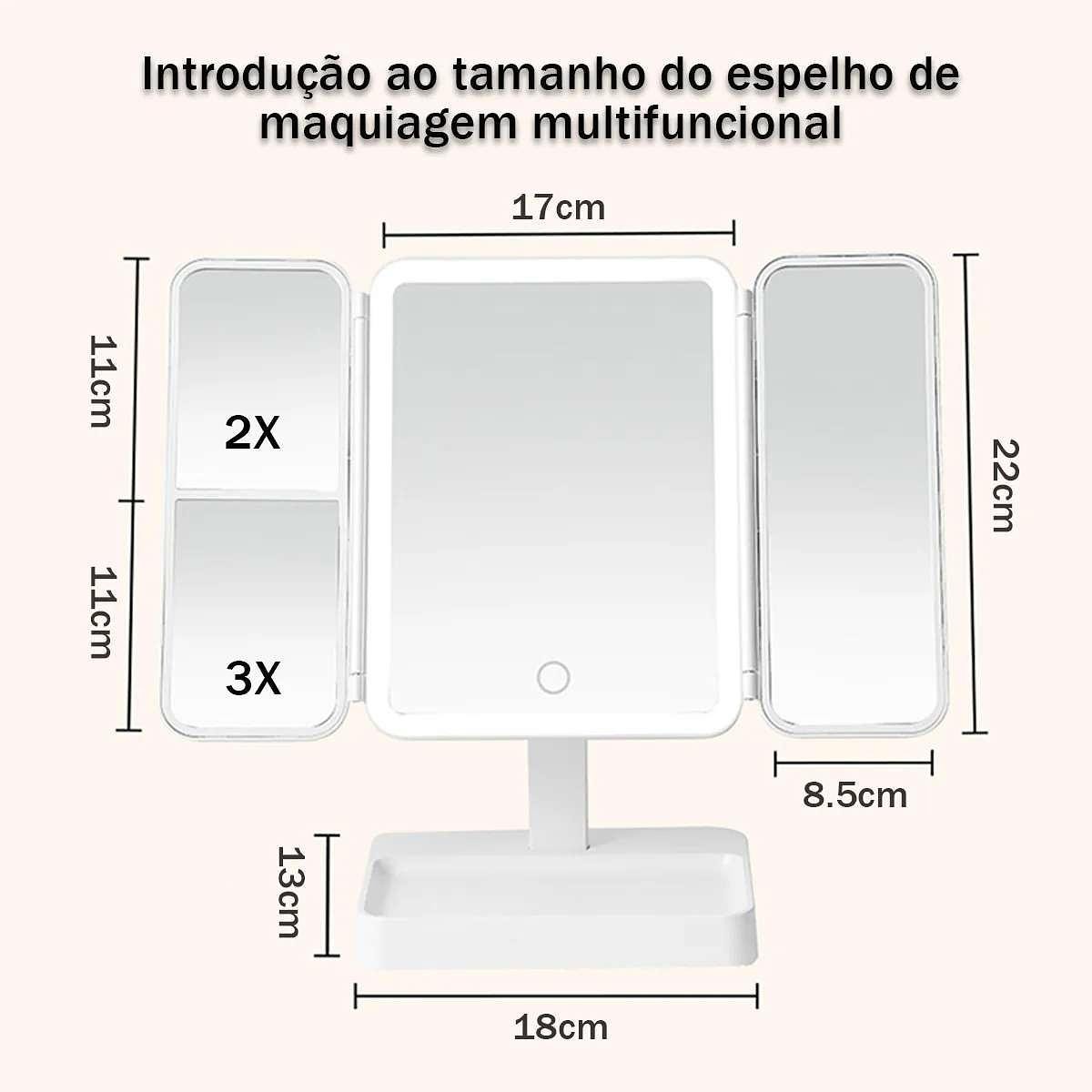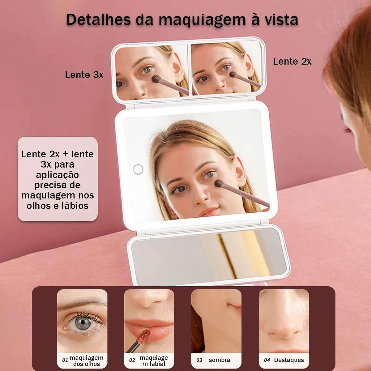 Design de ampliação de alta definição: Com lentes 2x e 3x, permite uma visão precisa dos detalhes da maquiagem. Ideal para aplicação perfeita nos olhos e lábios.